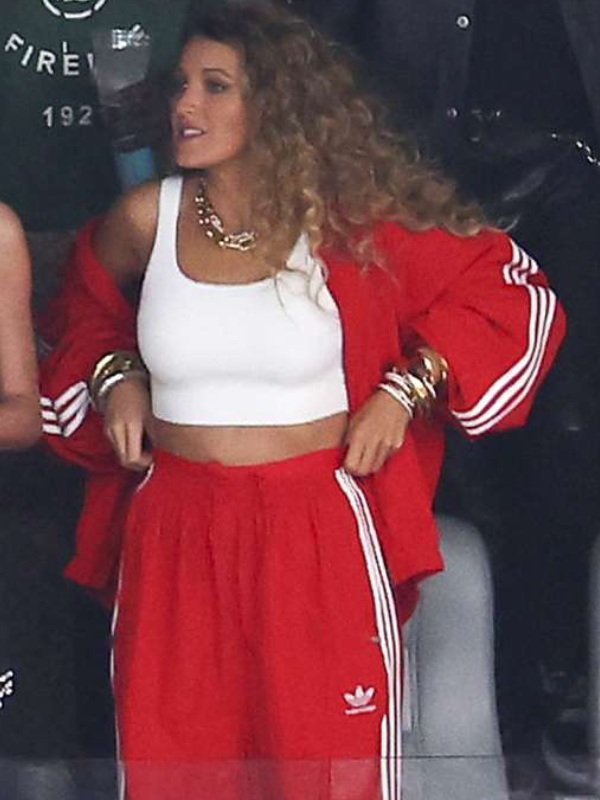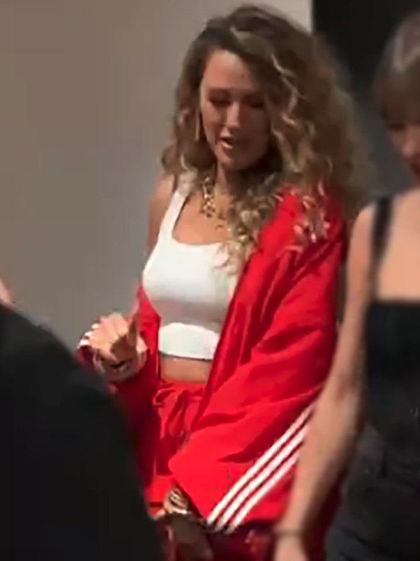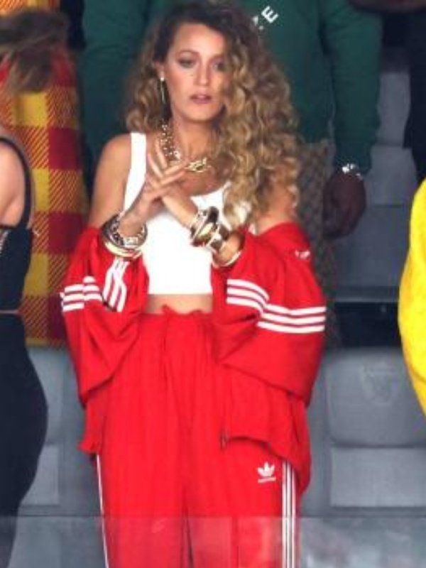Super Bowl LVIII 2024 Blake Lively Red Fleece Tracksuit
