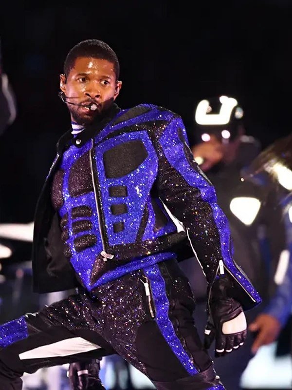 Super Bowl LVIII 2024 Usher Black and Blue Sequin Jacket