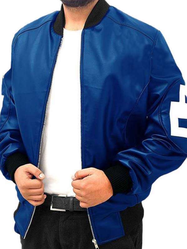David Puddy TV Series Seinfeld 8 Ball Blue Bomber Leather Jacket