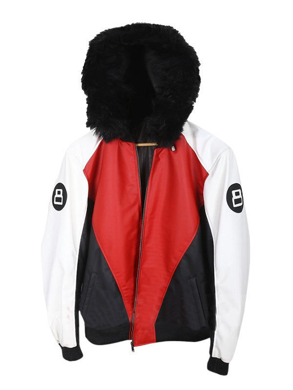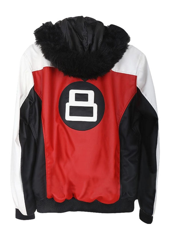 8 Ball Logo Fur Hooded Bomber Leather Jacket