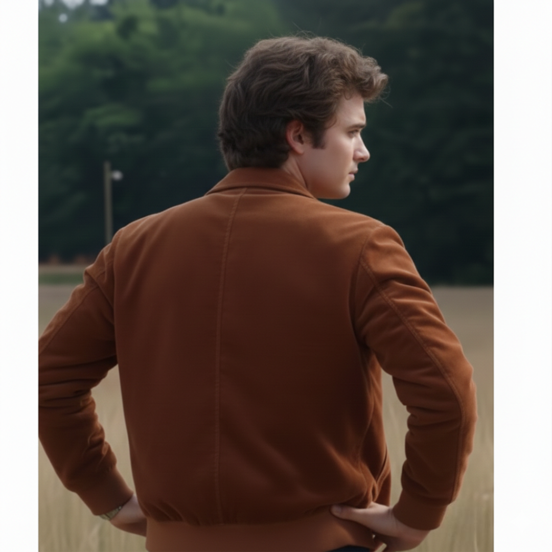 The unmistakable Steve Harrington Stranger Things Season 5 Brown Jacket is designed with Hawkins’ greatest hero in mind, showing off Steve Harrington’s growth from kid to man. The jacket embodies Steve’s mature rugged looks in Stranger Things’ finale season by merging a classic look with an assertive and confident attitude. Its rich brown hue makes this jacket a timeless classic, making it perfect for anyone who likes to dress like their favourite character or who needs a versatile piece for everyday wear.